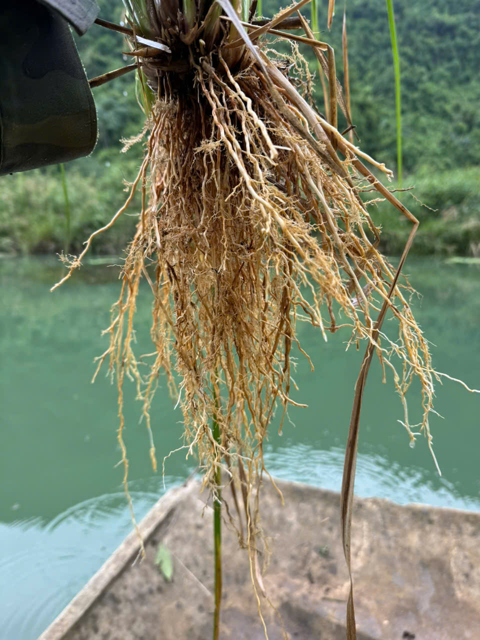 – Rễ là phần có tác dụng lớn và quan trọng nhất của cỏ Vetiver. Hệ thống rễ cỏ vetiver không mọc trải rộng mà lại cắm thẳng đứng sâu vào trong đất, kể cả rễ chính, rễ thứ cấp hoặc rễ dạng sợi. Rễ có dạng chùm không mọc trải rộng mà lại cắm thẳng đứng sâu 3-4m,  rộng đến 2,5m sau vài năm trồng (phụ thuộc vào điều kiện dinh dưỡng)